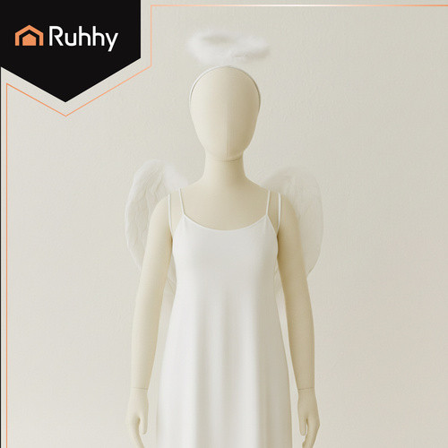 A hófehér szárnyak és a pántos glória együtt olyan hatást keltenek, amely bármilyen jelmezt kiemel, legyen szó angyalról, tündérről, manóról vagy más fantáziakarakterről.