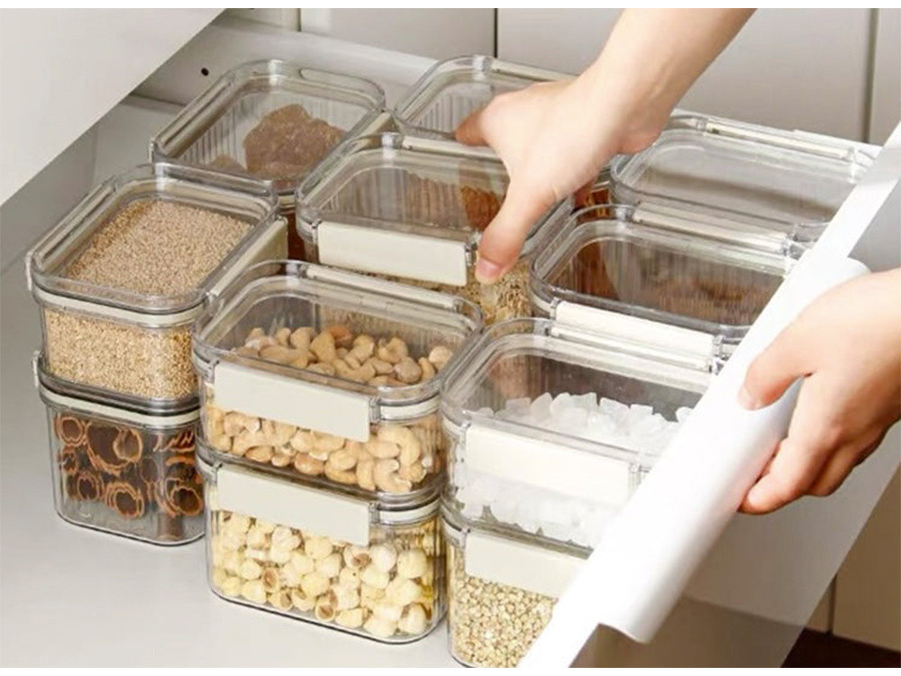 Különböző méretű tartályok készlete - Kiválóan alkalmas nagy és kis mennyiségű termékek tárolására.