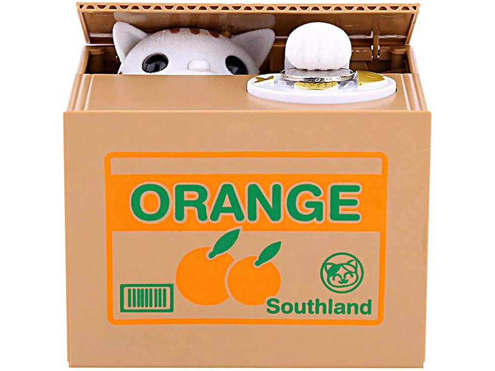 Az érme kivétele után a cica elbújik a dobozban.
