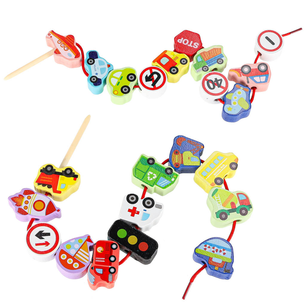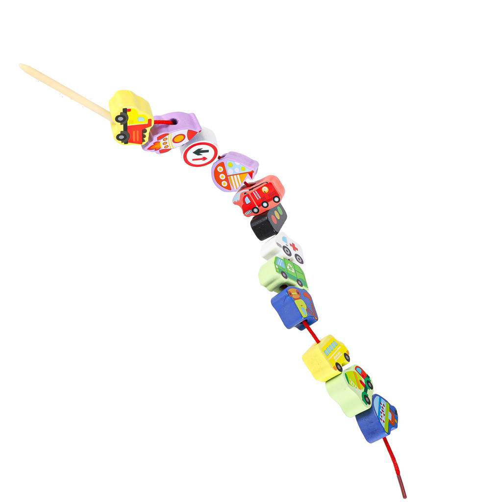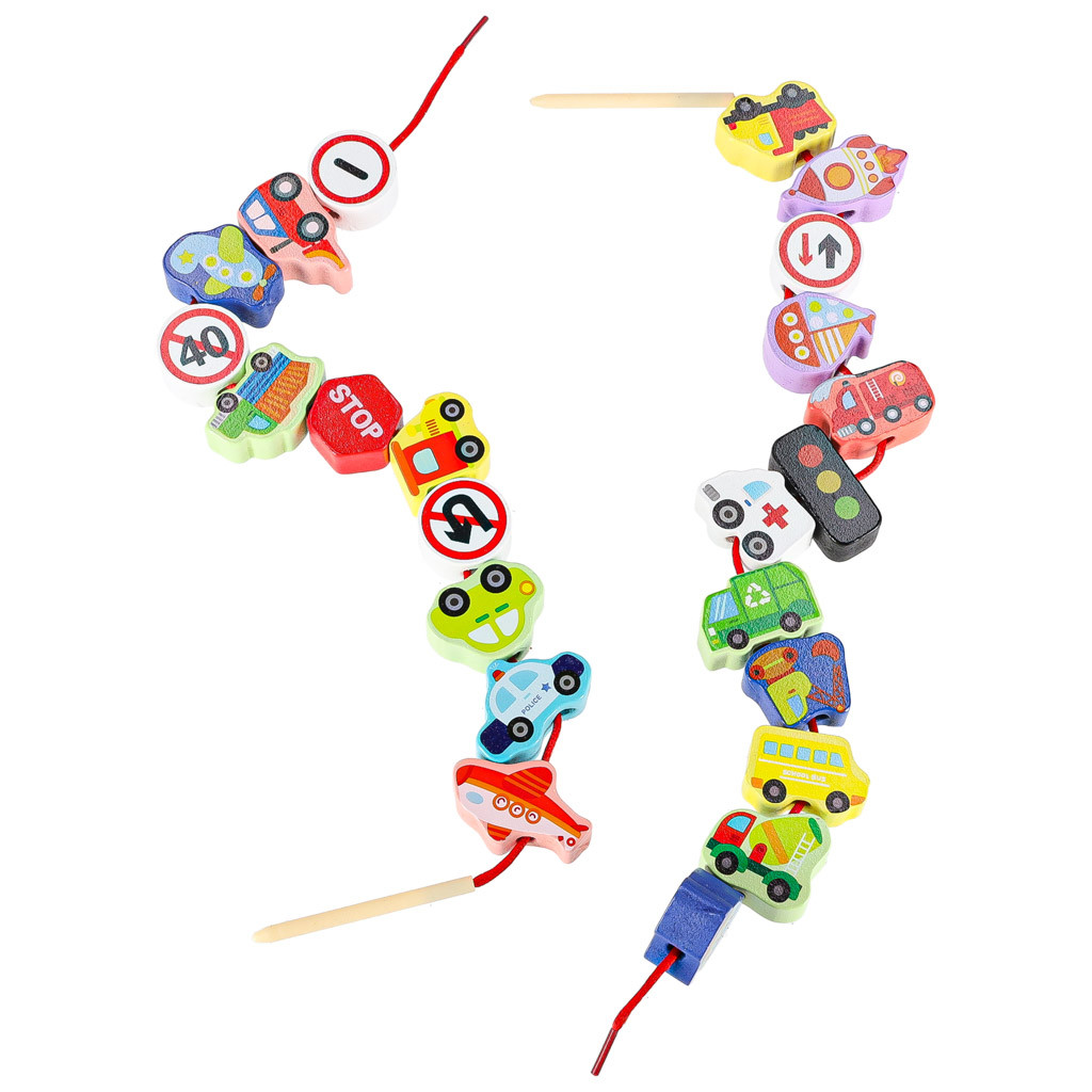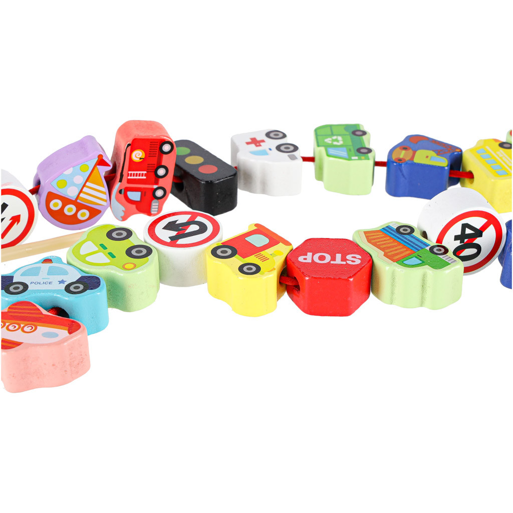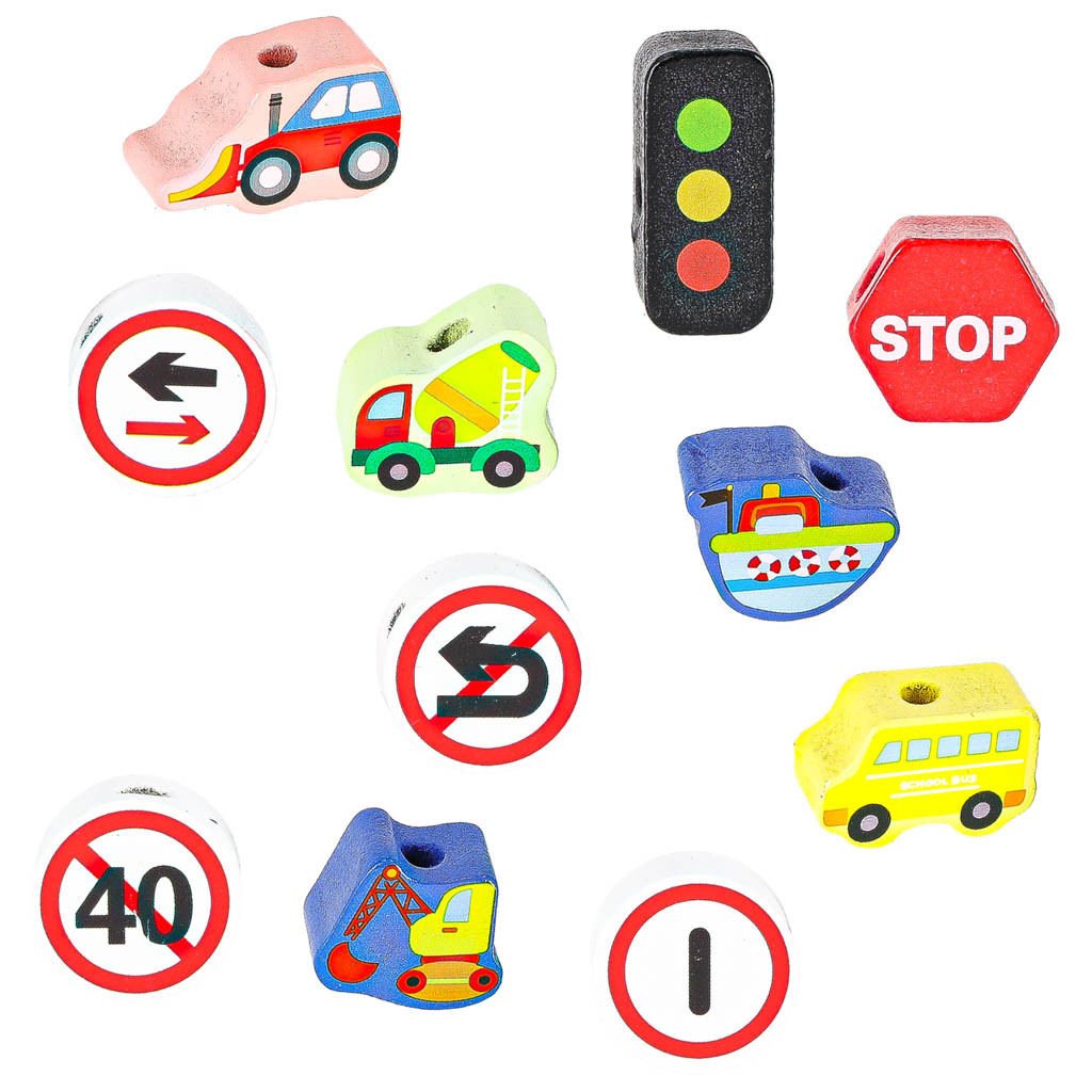 - 23 db fakocka befűzéshez (járművek és közlekedési táblák).