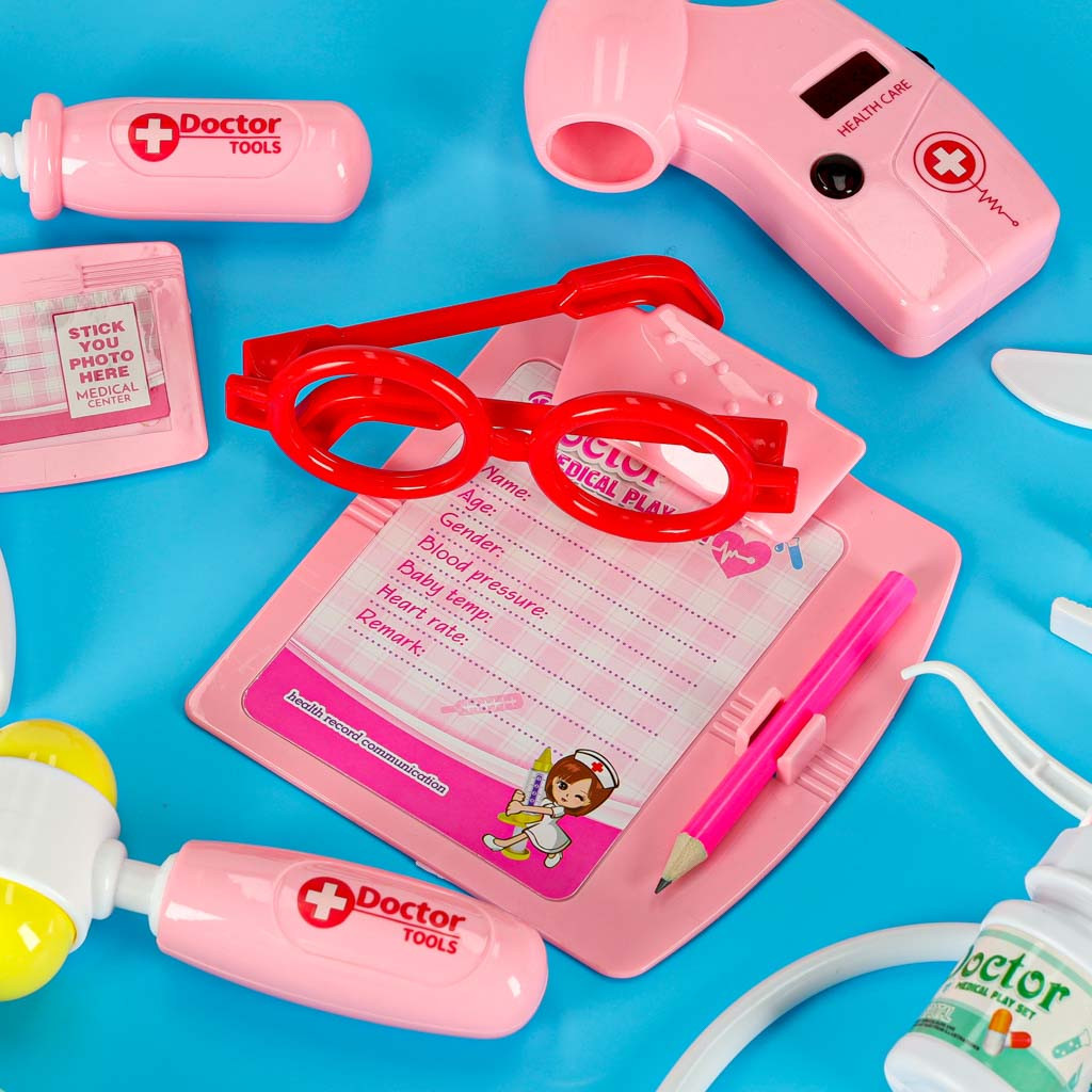 Változatos orvosi kellékkészlet – a készlet többek között fogászati kellékeket és alapvető eszközöket tartalmaz, ami számos lehetőséget kínál a szerepjátékra.