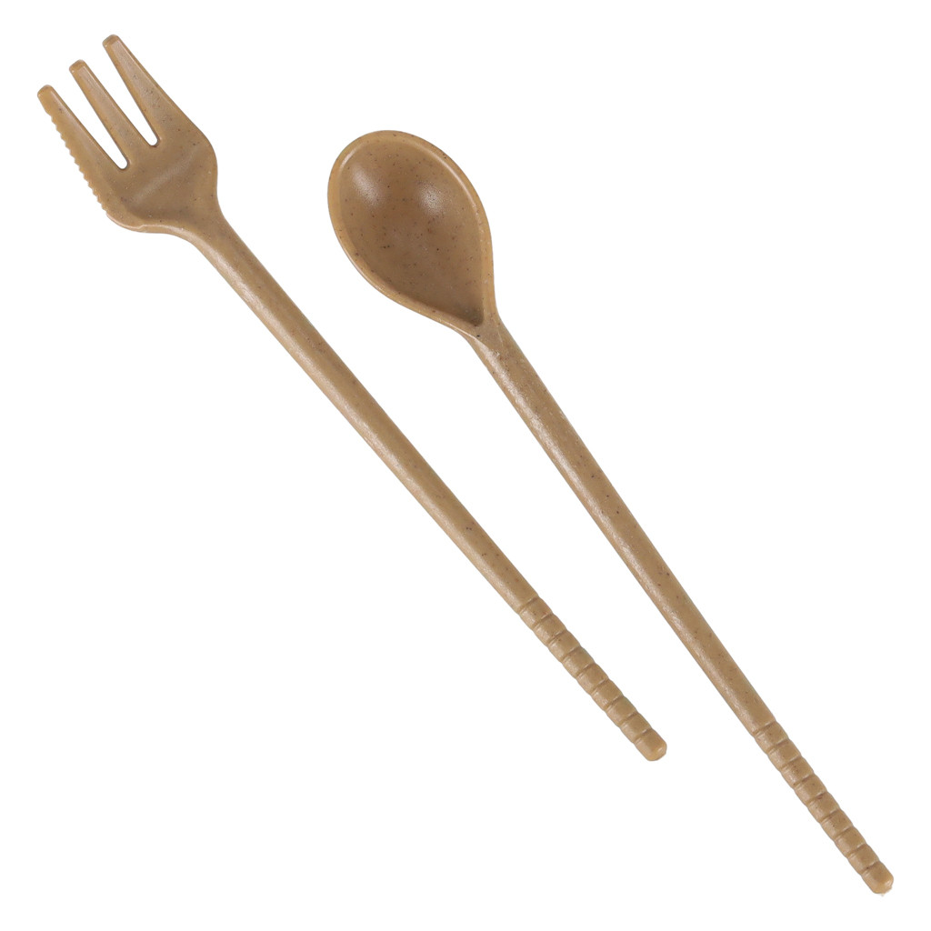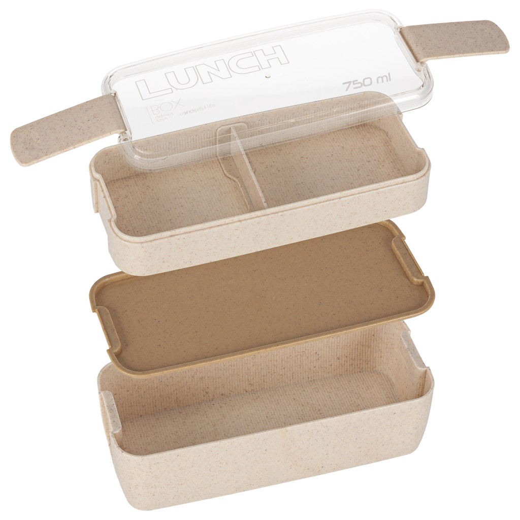 Kétszintes ételdoboz evőeszközökkel, bézs - 750ml