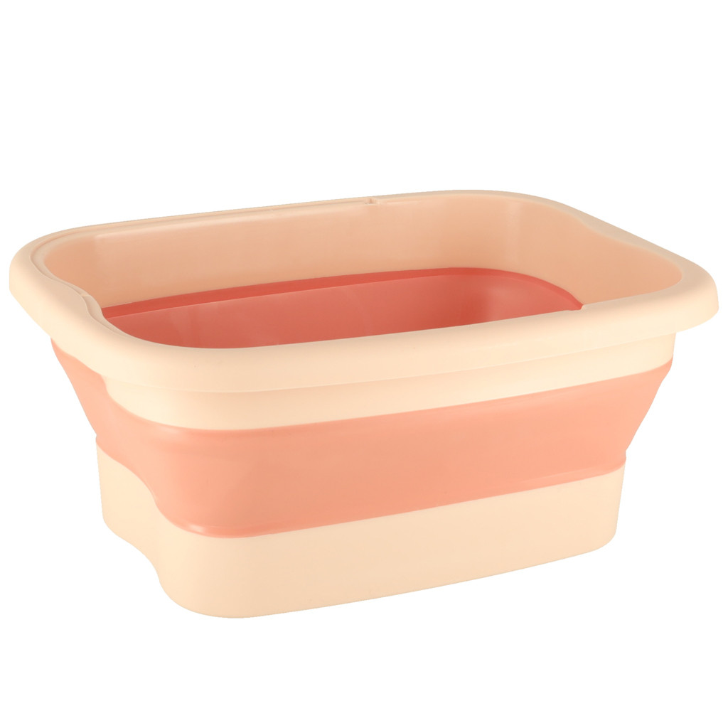 A víz kiöntése után a tál laposra hajtható – a kompakt lábmosó kevés helyet foglal, így tökéletes utazáshoz.