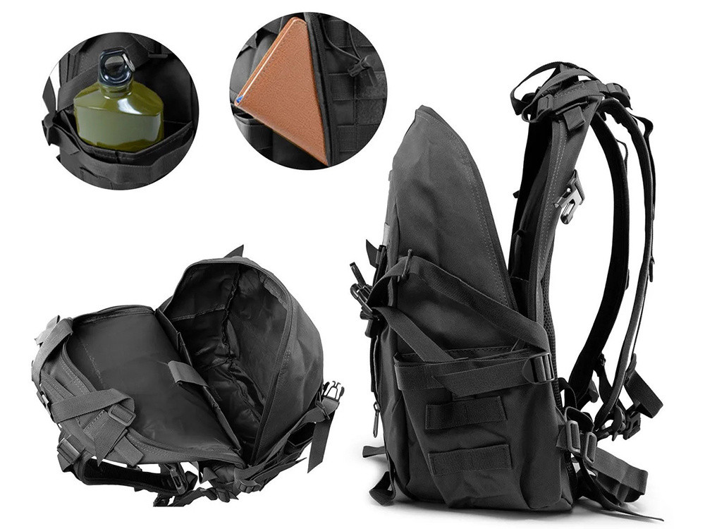Ez a taktikai hátizsák megbízható társ bármilyen expedícióhoz – mind a terepen, mind a mindennapokban. Tartós 800D OXFORD anyagból készült, magas kopás- és vízállósággal rendelkezik, így zord időjárási körülmények között is alkalmas. 30 literes űrtartalmával elférnek benne a nélkülözhetetlen felszerelések, dokumentumok, elektronikai cikkek vagy túlélőfelszerelések.