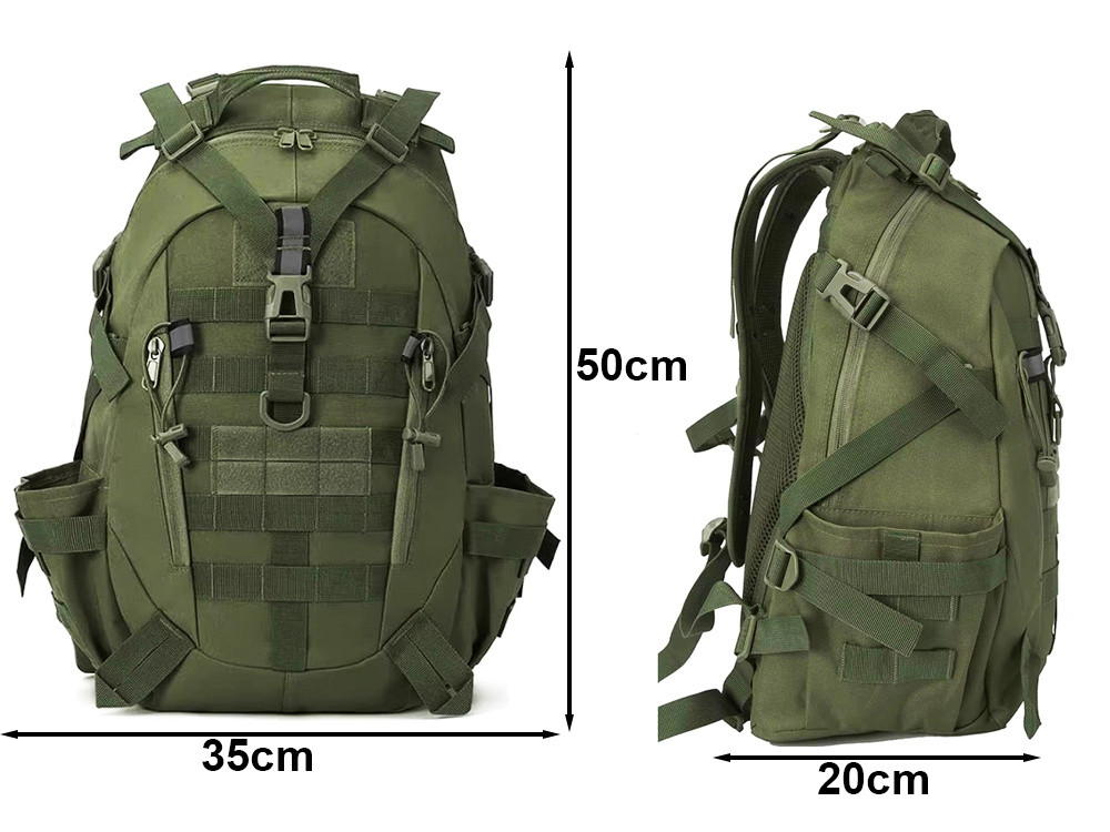 Ez a taktikai hátizsák megbízható társ bármilyen expedícióhoz – mind a terepen, mind a mindennapokban. Tartós 800D OXFORD anyagból készült, magas kopás- és vízállósággal rendelkezik, így zord időjárási körülmények között is alkalmas. 30 literes űrtartalmával elférnek benne a nélkülözhetetlen felszerelések, dokumentumok, elektronikai cikkek vagy túlélőfelszerelések.