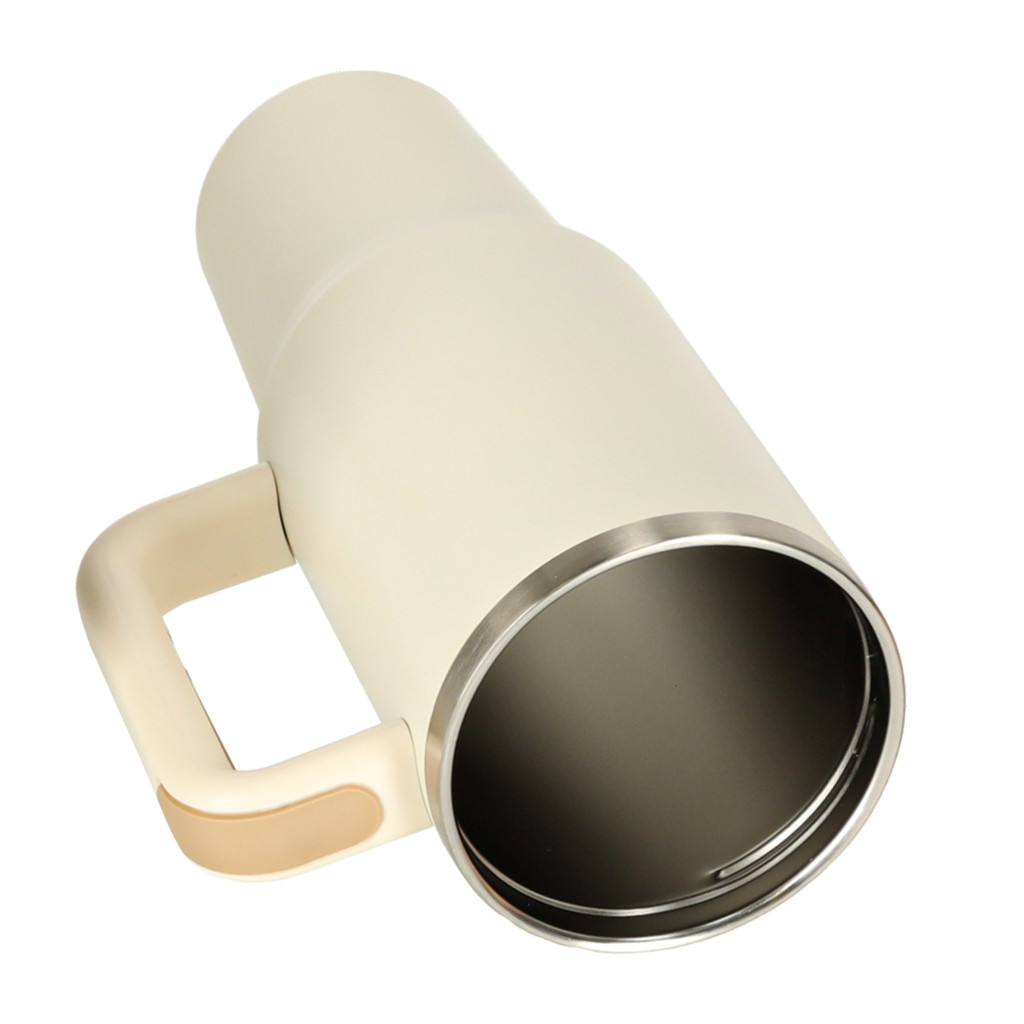 Termoszbögre füllel és szívószállal, krémszínű - 1200ml