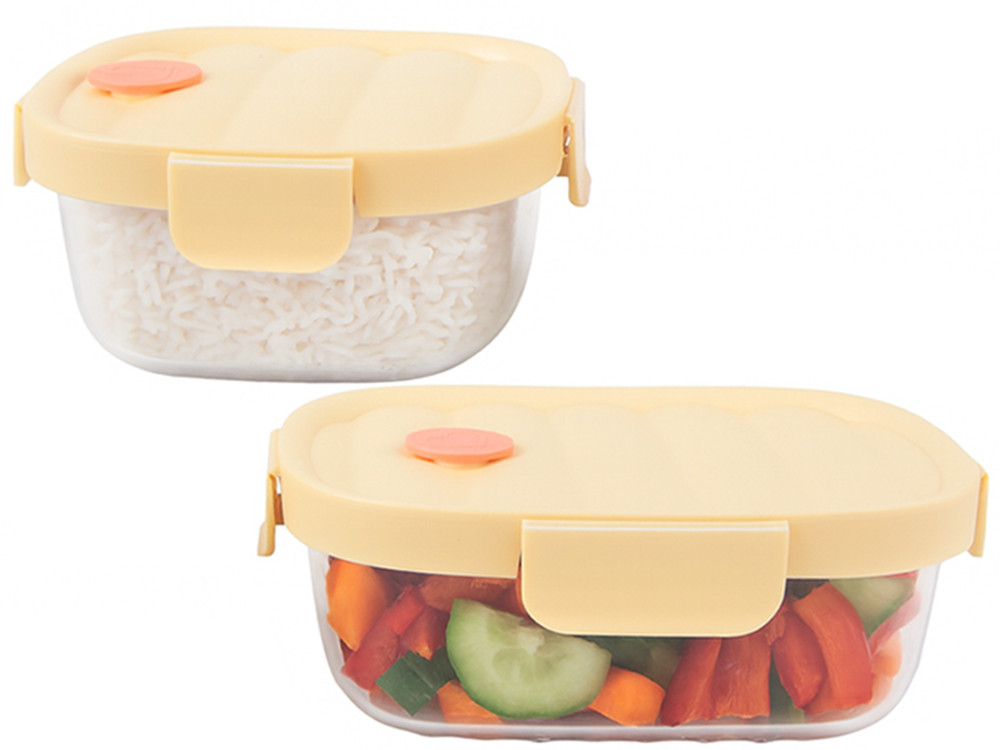 Üveg ételtárolók szilikon fedéllel és hűtőtáskával, 650ml/950ml - sárga