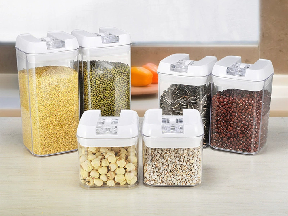Légmentesen zárodó átlátszó műanyag konyhai tároló készlet - 5db