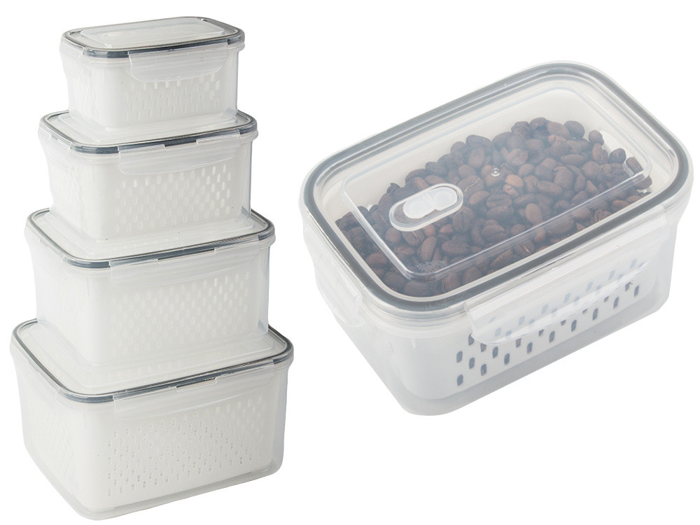Légmentesen zárodó átlátszó műanyag konyhai tároló készlet kosarakkal - 4db